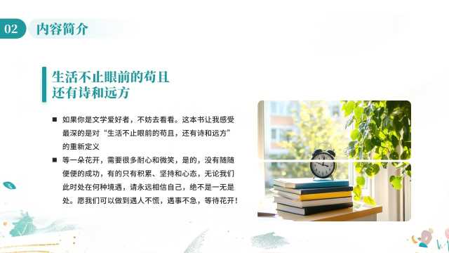 绿色清新风等一朵花开读书分享PPT模板[2026011101] 教学课件 如果您喜欢本模板,可以点击这里免费升级成为VIP,全站模板一律免费,欢迎持续关注,精彩模板每天推送 预览结束,一共19页,请下载后查看 如果您喜欢本模板,可以点击这里免费升级成为VIP,全站模板一律免费,欢迎持续关注,精彩模板每天推送 资源下载下载价格19 RMBVIP免费立即购买如果链接失效或充值问题,请将用户名或订单号发邮件到3204167195@qq.com,我们会帮您处理 0 教学课件