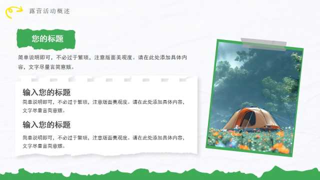 绿色简约风春季露营策划PPT通用模板 教学课件 如果您喜欢本模板,可以点击这里免费升级成为VIP,全站模板一律免费,欢迎持续关注,精彩模板每天推送 预览结束,一共23页,请下载后查看 如果您喜欢本模板,可以点击这里免费升级成为VIP,全站模板一律免费,欢迎持续关注,精彩模板每天推送 资源下载下载价格19 RMBVIP免费立即购买如果链接失效或充值问题,请将用户名或订单号发邮件到3204167195@qq.com,我们会帮您处理 0 教学课件
